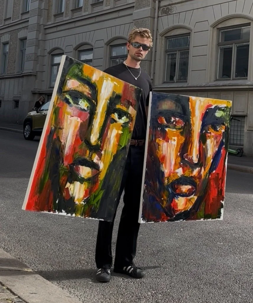 I am a 23 year old artist from gothenburg, sweden. My painting began in 2020 and I found my passion for oil paint and palette knives quickly. As a child I payed many visits to museums which ignited a spark of inspiration and ambition for painting. During my teens I believed this spark was dead but I was wrong. After some turbulent years of my teens I had a lot to express. Since 2020 I’ve been selling artworks worldwide to those who appreciates my work. So far I have done one solo exhibition and a couple of collaboration exhibitions.